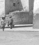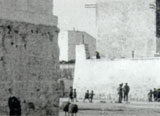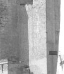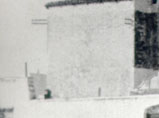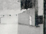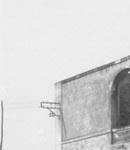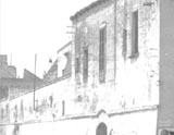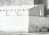 | Monastero con il cortile rimosso e mostrando una nuova arcata, circa il 1950. La foto dall'angolo di Via Muraglia include lo "stallone" e le vecchie mura del paese. Si noti il bagno semi-aperto all'angolo, un mezzo comune a quei tempi. | |||||||||||||||||||||||||||||||||||