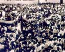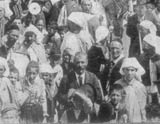 | Marconi Square. People are lined up to view fireworks at the end of St. Rocco's procession in early afternoon, Aug 16, 1960. The Saint is present among the crowd, in the center. | ||||||||||||||||||||||||||||||