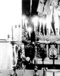 | St. Rocco's altar special setting for the Patron Saint celebrations, 1950. Every year for three days, August 15, 16, and 17, the town dresses up and celebrates S. Rocco, the Patron Saint of the town. | |||||||||||||||||||||