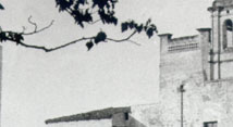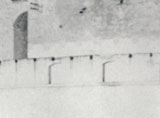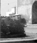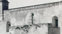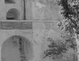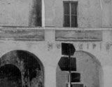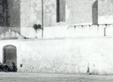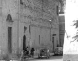 | Monastery around 1950 with courtyard removed and showing new arches. View is from angle showing Muraglia St., including the "stallone" and the remnants of the city walls. Note semi-open plumbing fixtures at the corner, a common facility at the times. | |||||||||||||||||||||||||||||||||||