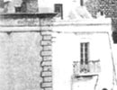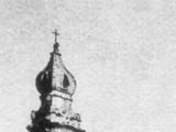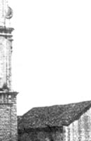 | Fotografia della Chiesa di Sant'Antonio e Campanile, fatta il 1933 guardando al frontale della chiesa. La scala sul centro accedeva allapiazzola sopraelevata e pavimentata con mattoni di pietra. | ||||||||||||||||||||||||||||||