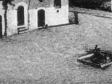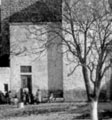 | Fotogarafia della Chiesa di Sant'Antonio ed il Campanile, fatta il 1933 guardando verso sud-ovest. La piazza di fronte alla chiesa era allora coperta con mattoni di pietra, "kgniangata", che si alzava um metro sopra il livello delle strade. La piazza avava un muretto che delimitava il perimetro, ed un monumento all'angolo. La chiesa fu costruita intorno al sedicesimo secolo. Il Campanile dominava alto sui campi d'intorno, e con le sue campane segnò per diversi secoli le attivitá sociali e religiose della communità, come il vespro ogni sera. | |||||||||||||||||||
