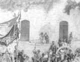 | St. Rocco celebration, 1880. The roots of this celebration probably go back to the eighteenth century when the town, afflicted by plagues, turned to revere St. Rocco who was known for his life work in assisting and comforting pestilence afflicted communities. | |||||||||||||||||||||
