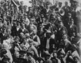 | Marconi Square. People are lined up to view fireworks at the end of St. Rocco's procession in early afternoon, Aug 16, 1960. The Saint is present among the crowd, in the center. | ||||||||||||||||||||||||||||||