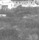 | Vista panoramica del paese dal tetto di una casa campestre il 1933. La strada rurale sul fronte portava alla porta Santa Croce, un'altro accesso della vecchia citta murata. Il nucleo originale del paese, sviluppatosi intorno al castello baronile, è visibile sulla sinistra della foto. Questa foto mostra chiaramente il secondo nucleo fuori delle mura, sulla destra della foto, che si sviluppò il quindicesimo secolo con la costruzione della chiesa di S. Antonio ad il monastero. | ||||||||||||||||||||